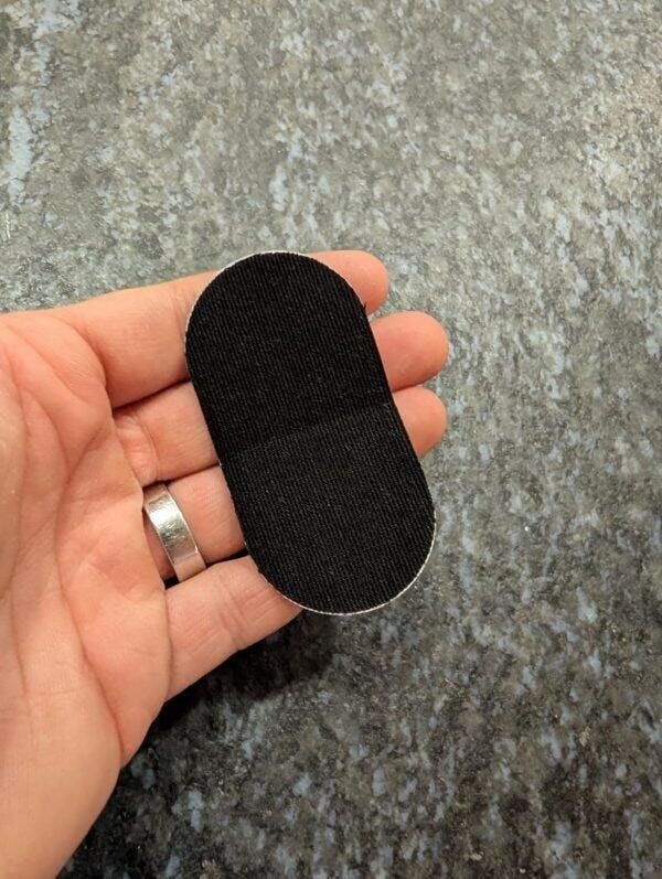 → Húzd szét a tapasz széleit, hogy eltávolítsd a védőréteget és feltárd a ragasztót.