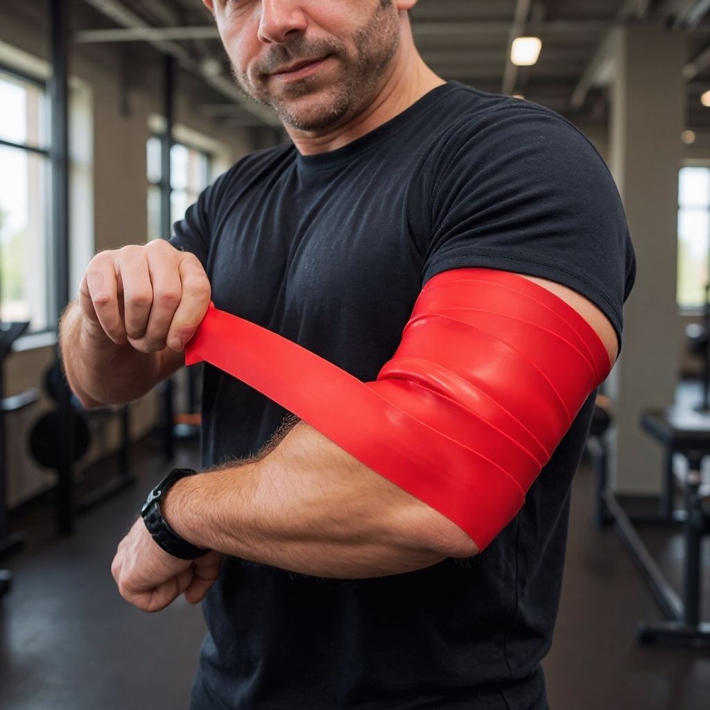 Tekerd körbe az érintett végtagot a szalaggal (pl. vádli, combhajlító, kar), kb. 50-70 %-os feszességgel, ügyelve arra, hogy még komfortos legyen. Figyelem: fej, nyak, mellkas és has területére ne alkalmazd.