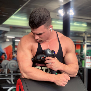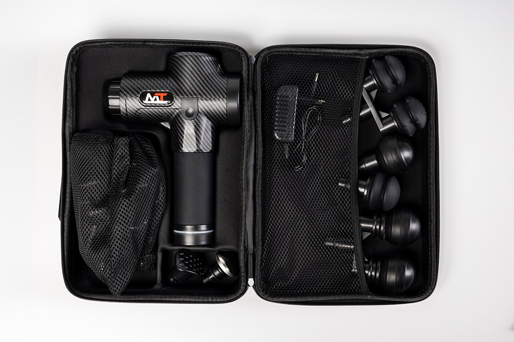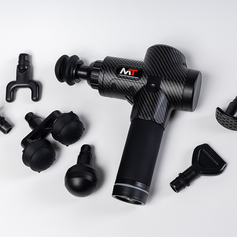 A masszázspisztoly egy pisztoly alakú eszköz, ami gyors, ismétlődő ütéseket ad le, amik mélyen elérnek az izomszövetekbe — nem csak a felszínt masszírozza, hanem az alsó, keményebb részeket is.