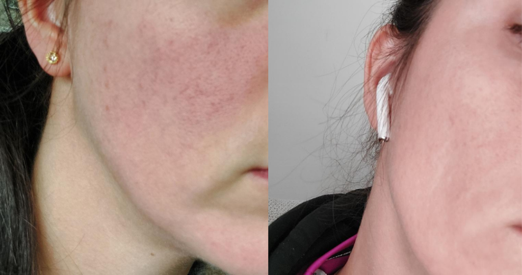 A vörös fény nem melegszik fel és egyáltalán nem irritálja a bőrt. Pontosan követtem a használati útmutatót, és utána hidratálót is alkalmaztam, ami szerintem sokat segít a hatás fokozásában.